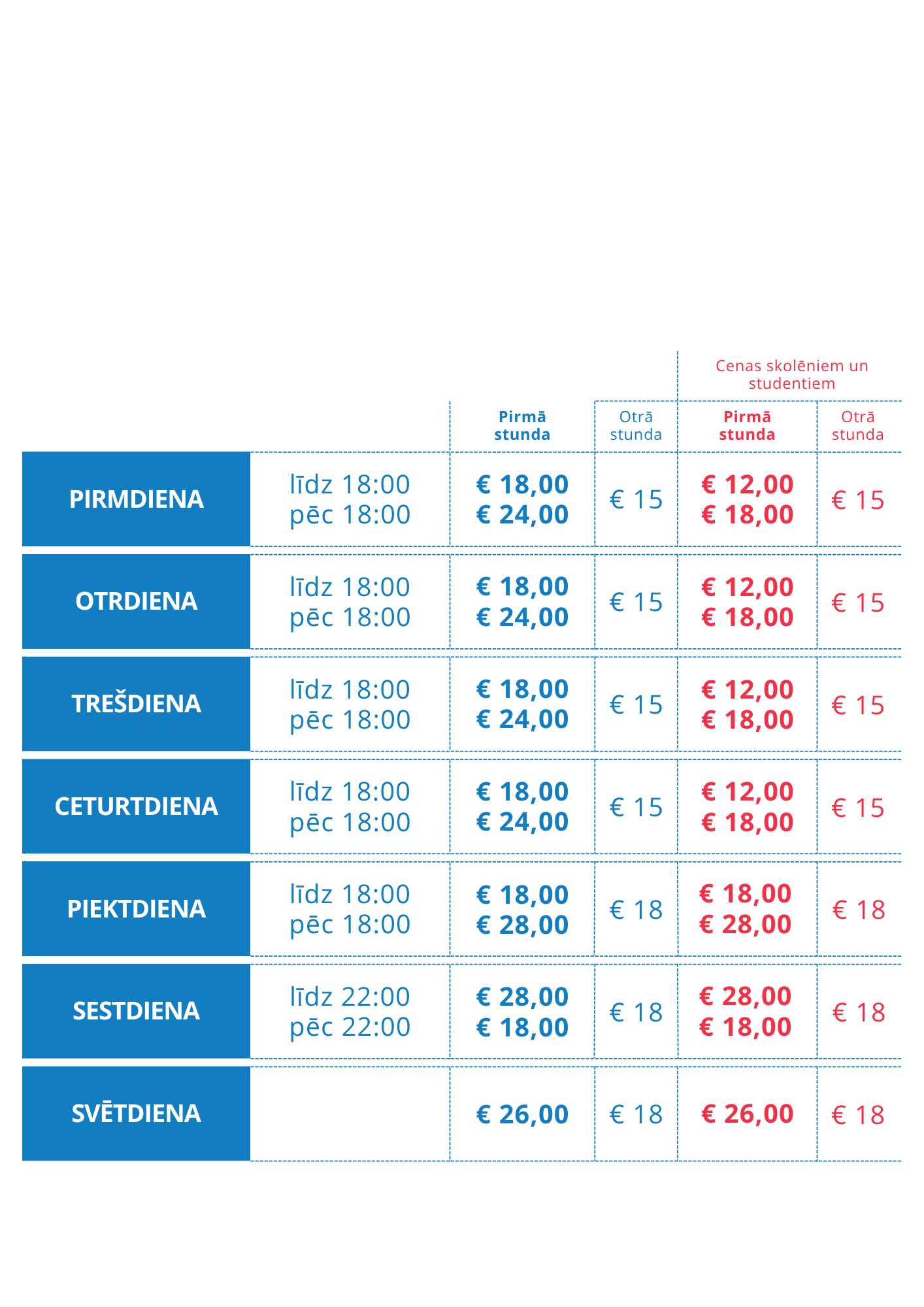 Studentu/ skolēnu atlaide ir spēkā, ja uz celiņa spēlē ne vairāk par 1 pieaugušo;